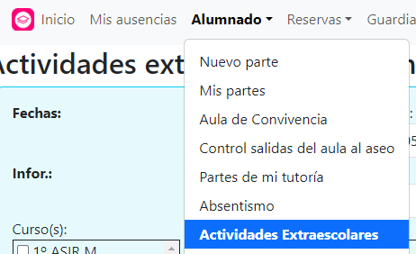 Y de forma automática, el mismo día de la actividad aparecerá en el parte de guardias un mensaje informativo con el título para que el resto de profesores del claustro esté informado que todo lo que ocurre en el Instituto.